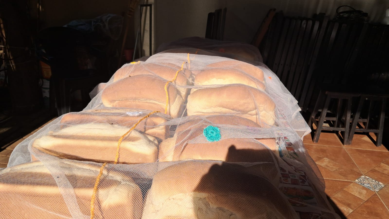 Cozinha Solidária, com o restante dos pães, em torno de 40 pães. Grupo este,