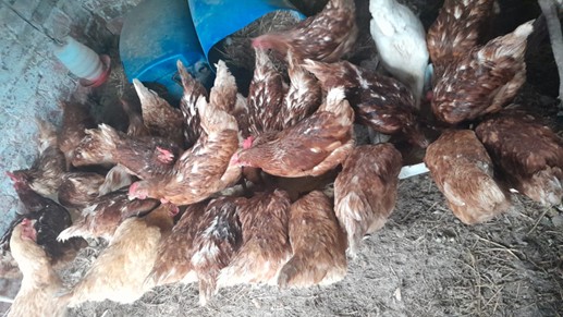 poedeiras (galinhas), em número de 25 por família. As aves poedeiras, espécie